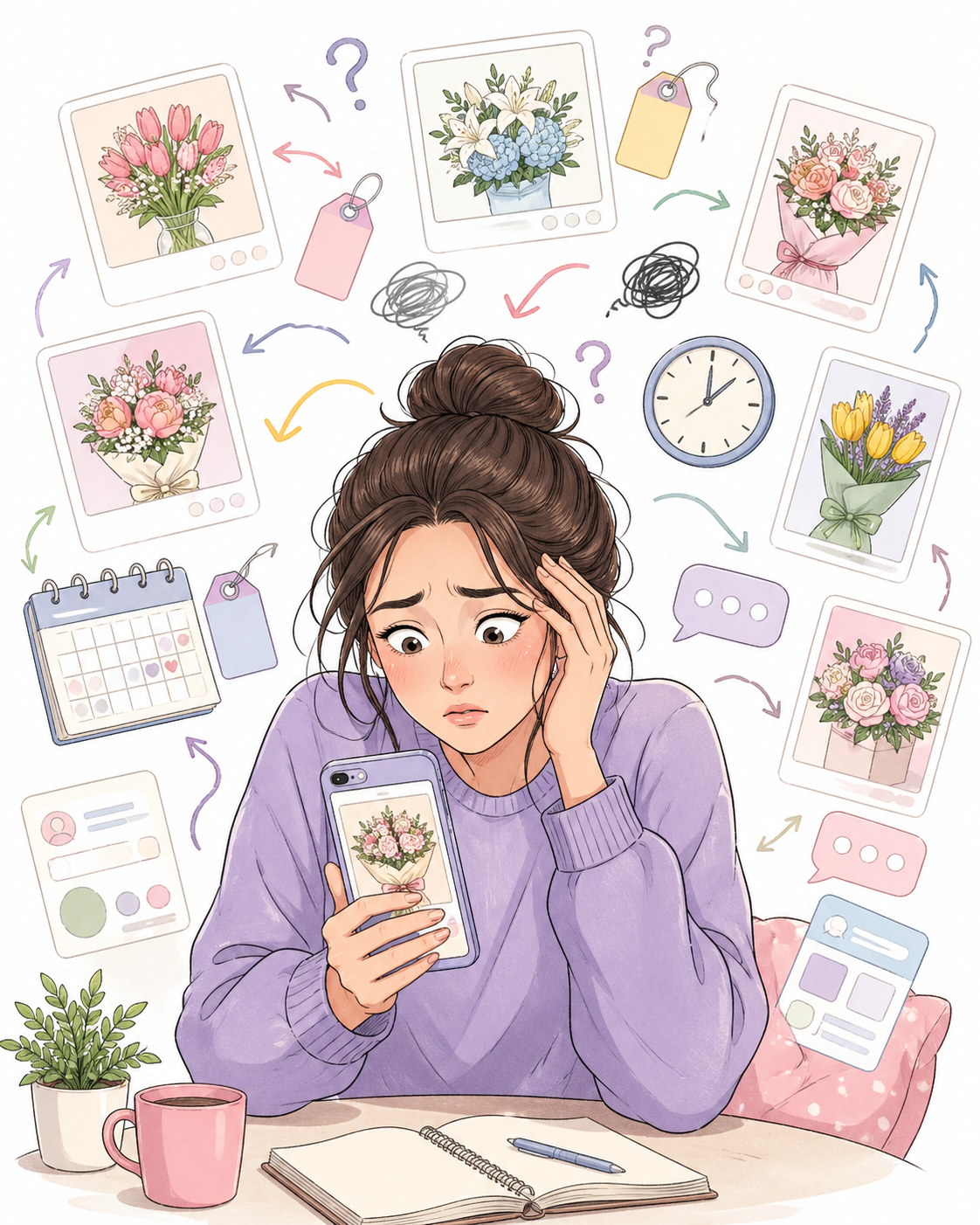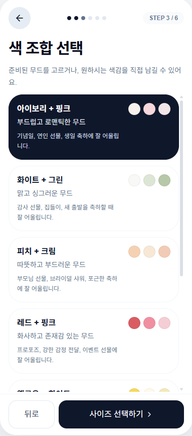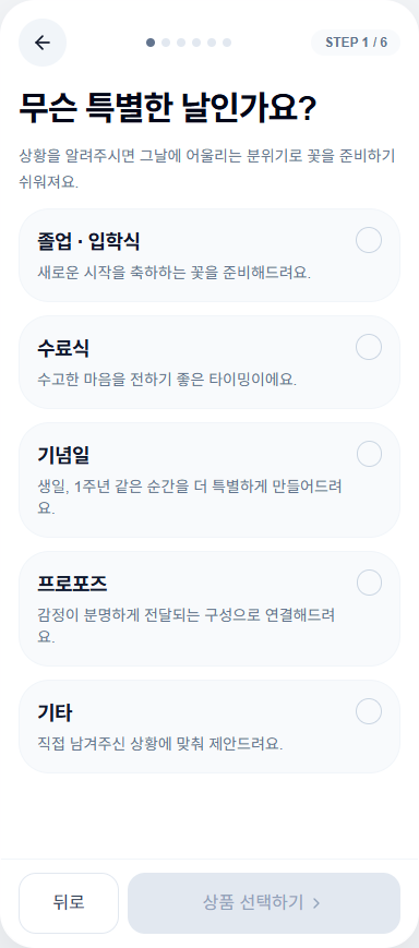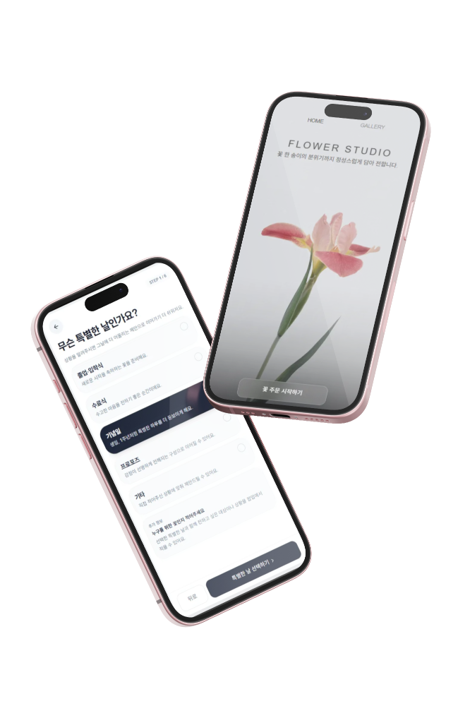 꽃집은 일반 쇼핑몰과 다릅니다. 상품명보다 분위기와 사이즈, 상담 흐름이 중요하기 때문에 BloomIt는 꽃집 주문 흐름에 맞게 설계합니다.